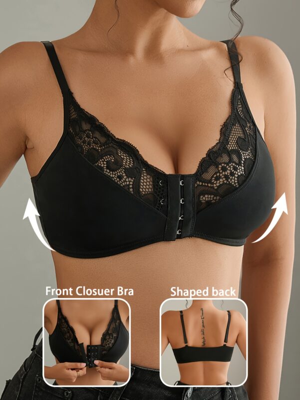 ₨4,545.60 – ₨4,584.00Price range: ₨4,545.60 through ₨4,584.00Sexy Lace Front Closure Bra for Women – Breathable Thin Cup Push-Up Bra with Non-Removable Pads, Underwire Support & Elegant Design for Everyday Comfort, Comfortable Undergarment, Feminine Elegance, Nonremovable Pads