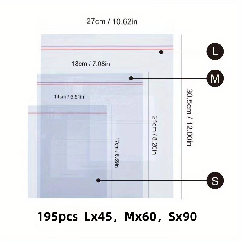 130pcs Lx30,Mx40,Sx60 ,15pcs,L ,195pcs Lx45,Mx60,Sx90 ,20pcs,M ,30pcs,S ,65pcs,Lx15,Mx20,Sx30 |