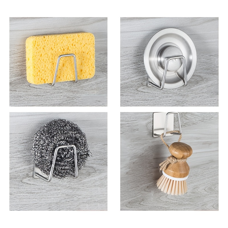 1pc/4pcs, No Punching Sponge Holder, Wall Mount Sponge Rack, Stainless Steel Sink Drain Rack, Random Color