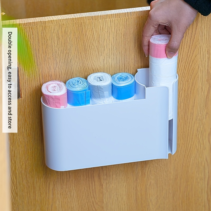 1pc Wall-Mounted Dual-Compartment Trash Bag Organizer with Transparent Window – ABS Plastic Kitchen Cabinet Door Storage Box, Space-Saving Design for Home & Office Organization, Minimalist Design | Durable Material, Trash Bag Holder