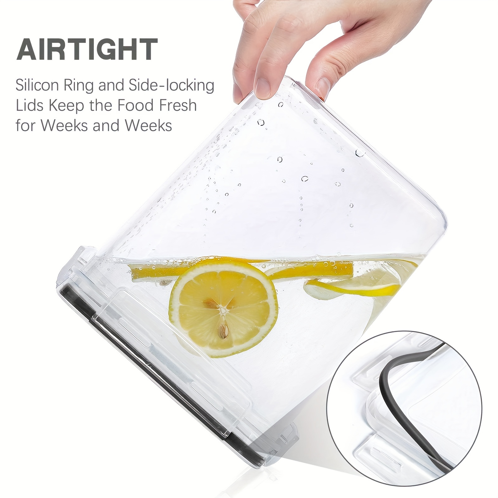Airtight Containers Keep Food Fresh—-The side-locking lids with silicone gasket make these storage containers airtight, and the top flips open easily. Airtight storage system will always keep your food dry and fresh. All have the same lids make it easy to wash dry and reuse with ease.