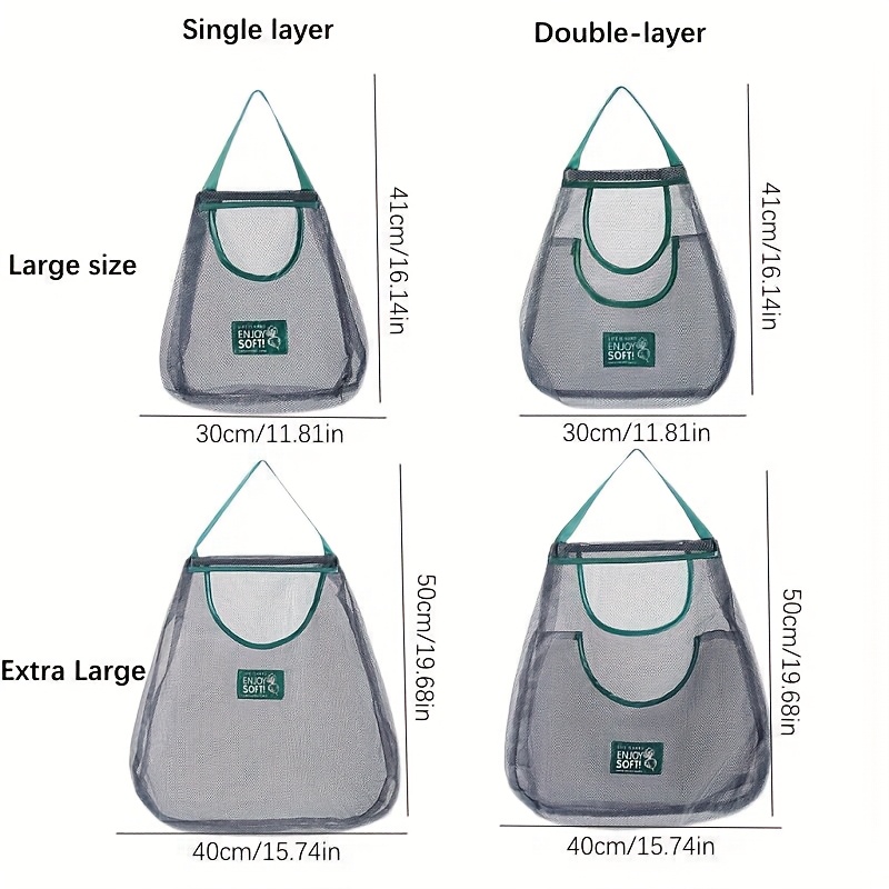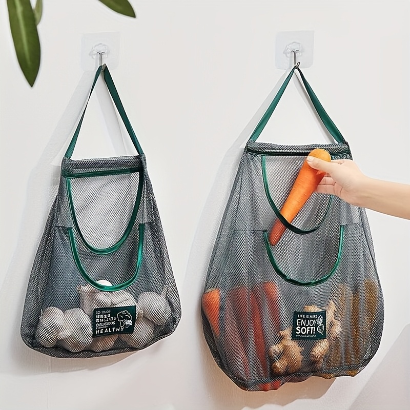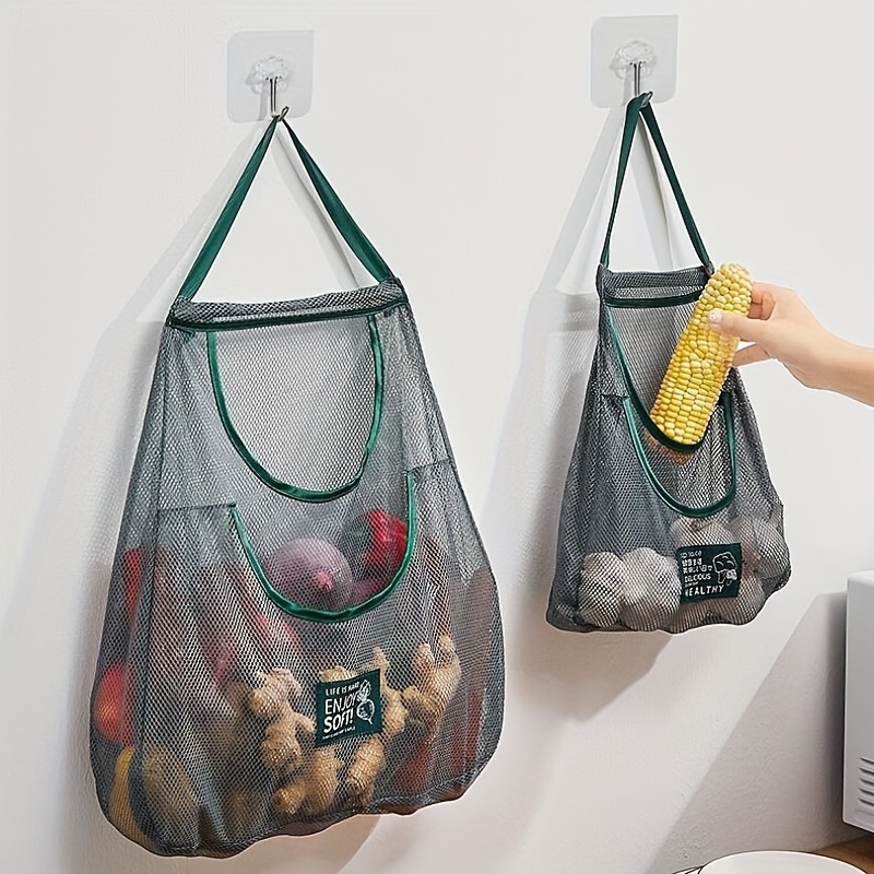 Single-layer and double-layer enlarged hanging household storage bags, multi-functional kitchen storage net bags – wall-mounted fruit, vegetable and ginger and garlic storage bags, essential accessories for home