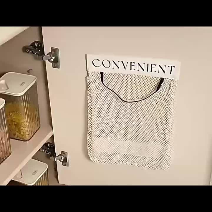 Space-Saving Wall-Mounted Organizer for Plastic Bags – Reusable, Elastic Mesh Storage Rack for Kitchen & Clothes Bags, Non-Food Grade