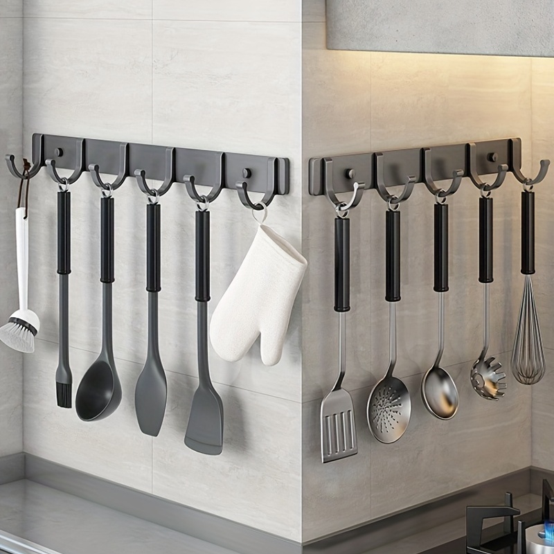 1pc Wall Mount Hanging Rod With 3/4/6 Hooks, Heavy Duty Wall Door Counter Cabinet Coat Hanger Towel Rack For Bathroom Living Room Kitchen, Utensil Rack, Modern Wall Rod Storage Hook, Kitchenware Storage Rack Organizer, Kitchen Accessories