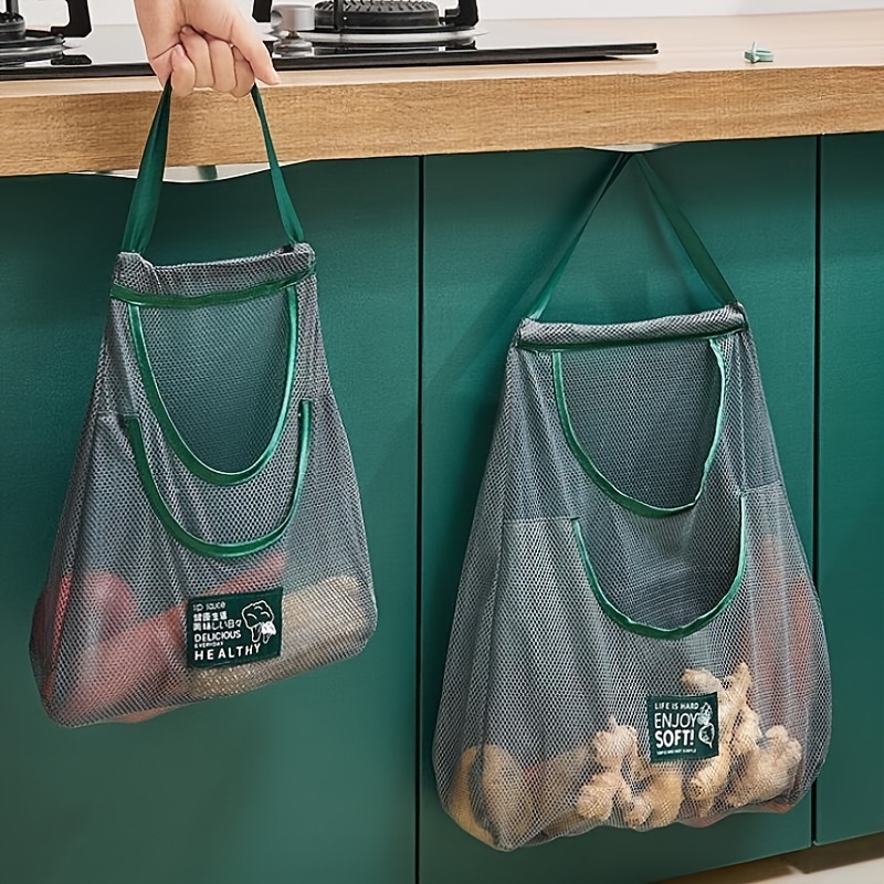 Single-layer and double-layer enlarged hanging household storage bags, multi-functional kitchen storage net bags – wall-mounted fruit, vegetable and ginger and garlic storage bags, essential accessories for home